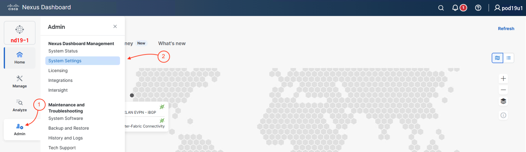 In this step, you will configure the primary Nexus Dashboard (ND) cluster. For this lab exercise, the designated primary cluster is nd19-1.