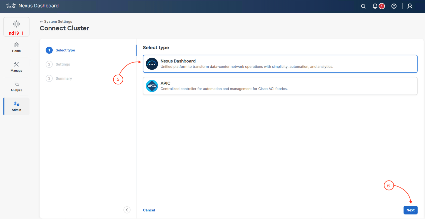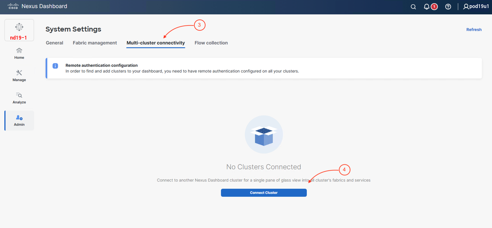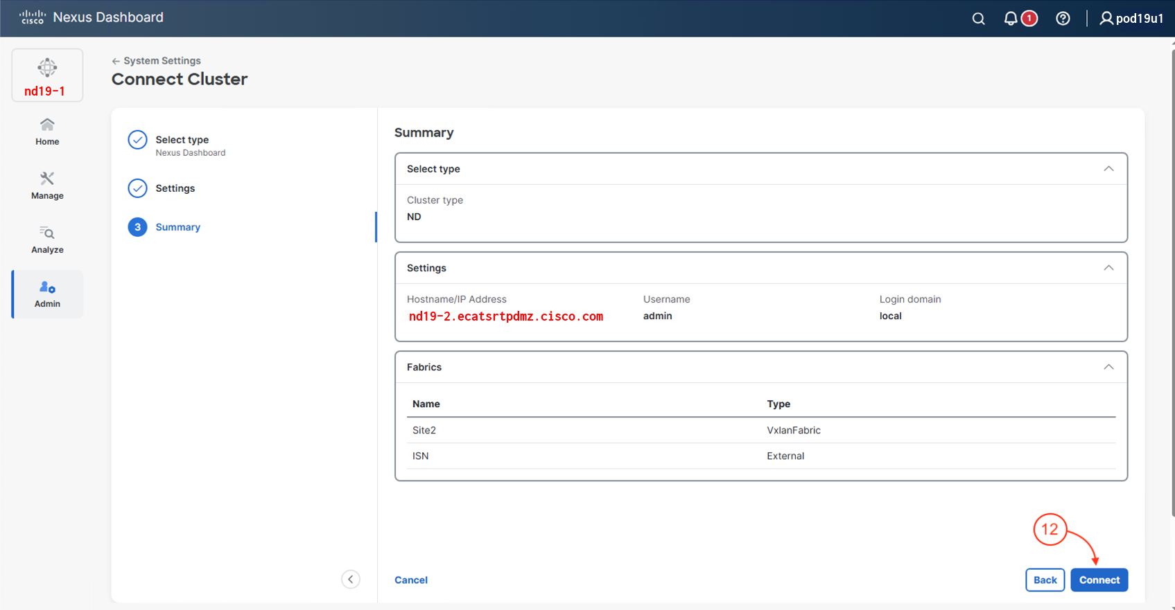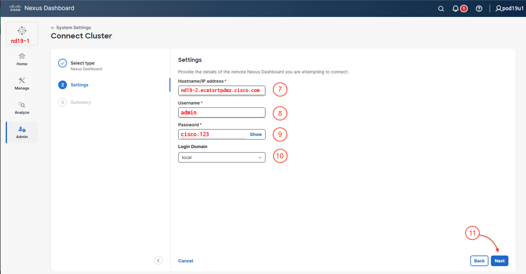 In this step, you will add the second Nexus Dashboard cluster, nd19-2, to the multi-cluster environment to enhance centralized management and scalability.