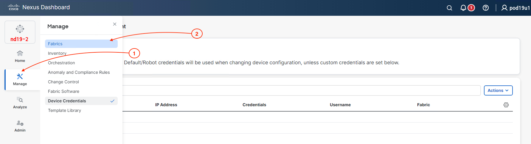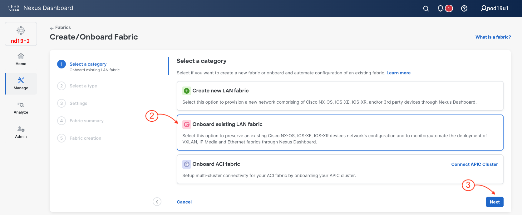 With your Greenfield fabric created and deployed, your focus is now toward your Brownfield fabric. This will be your Site2 fabric.