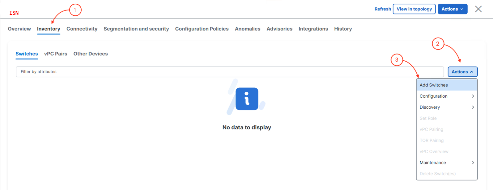 3. Click Add Switches in the dropdown