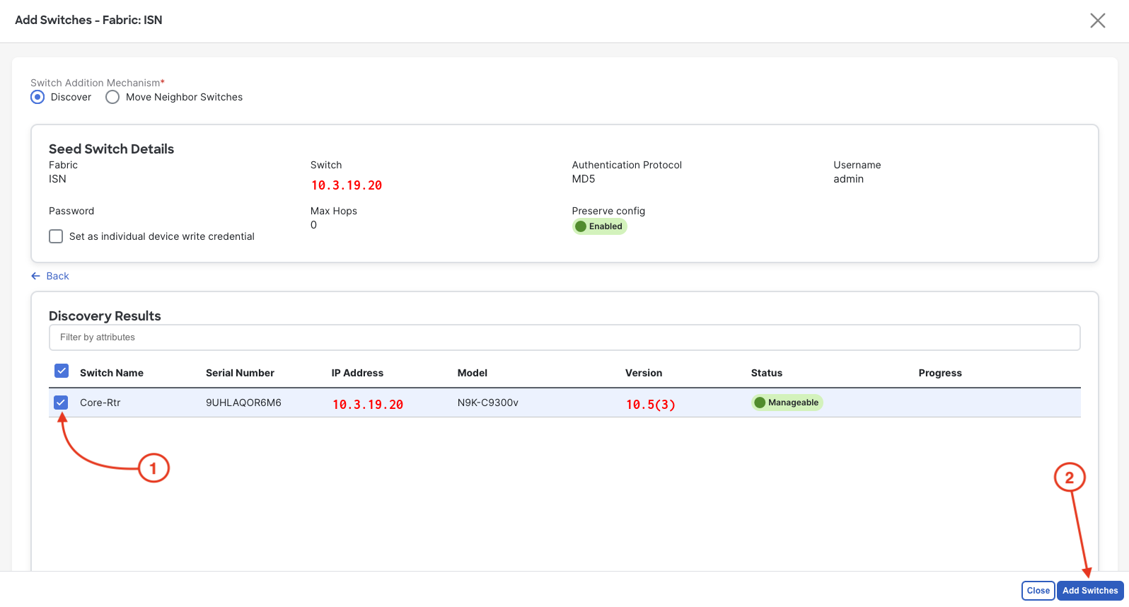 7. Click Discover Switches in the bottom right