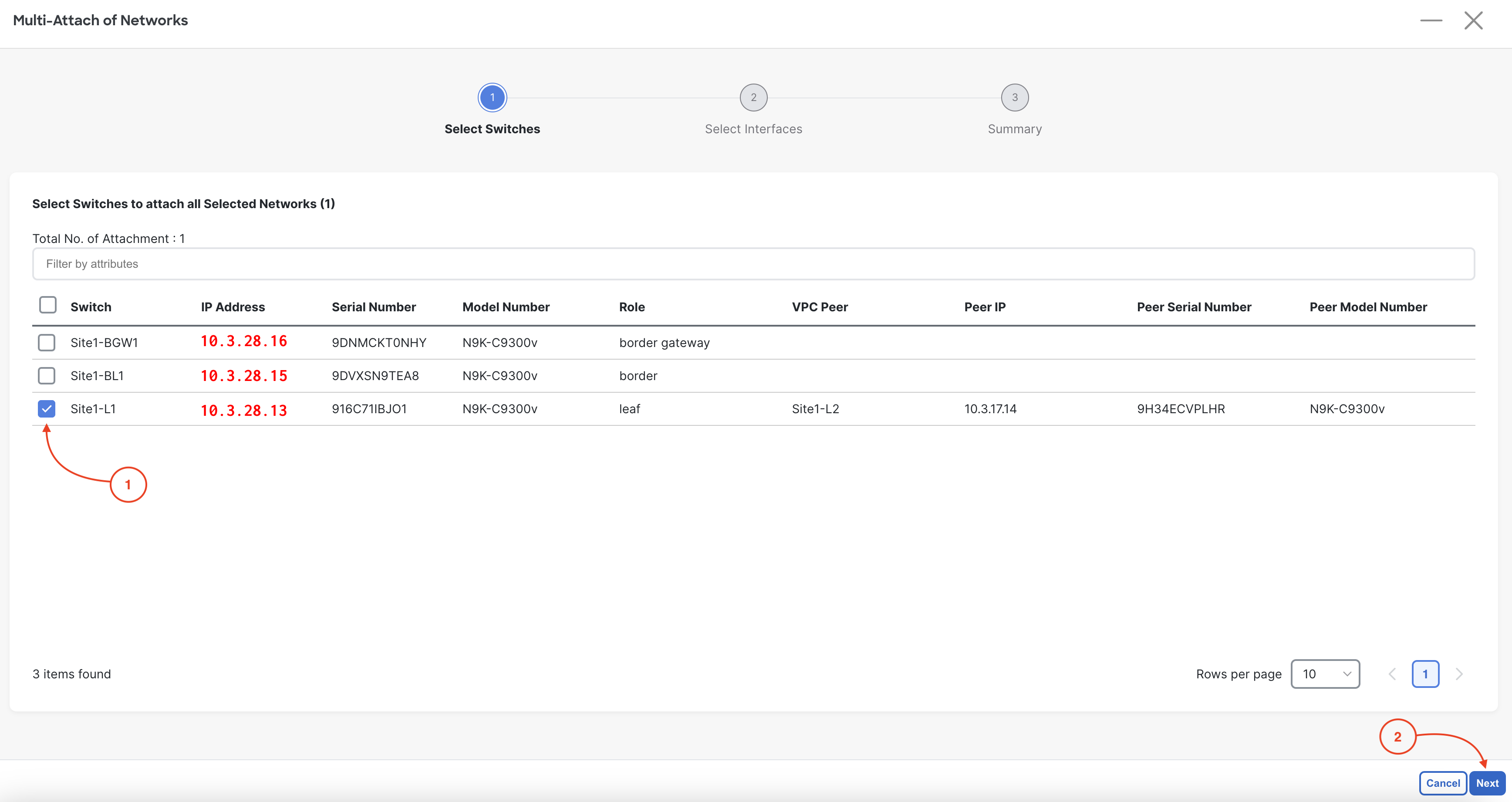 Step 2 - Select Site1-L1 & Site1-L2 to Attach BlueNet1 and BlueNet2 Network