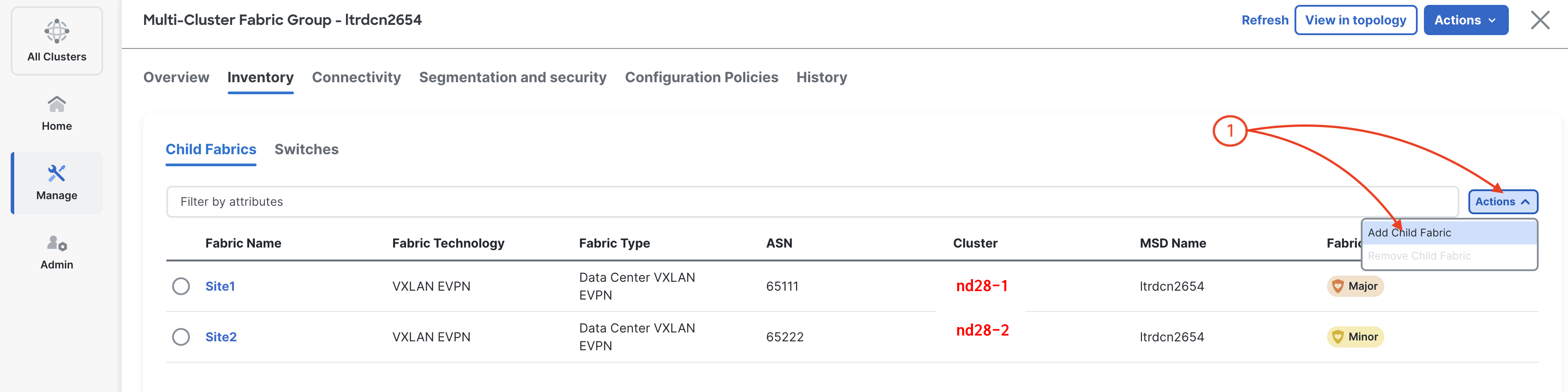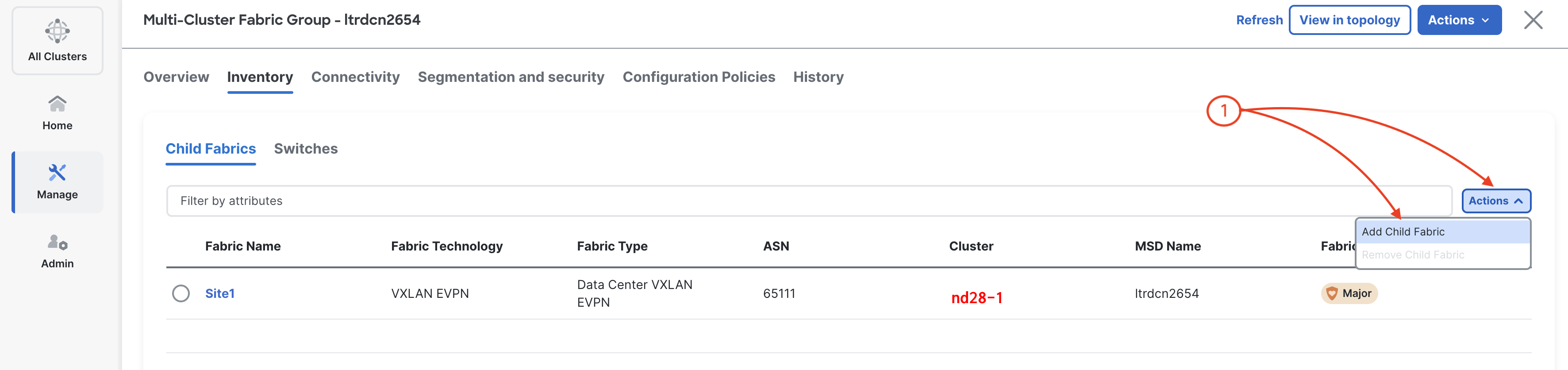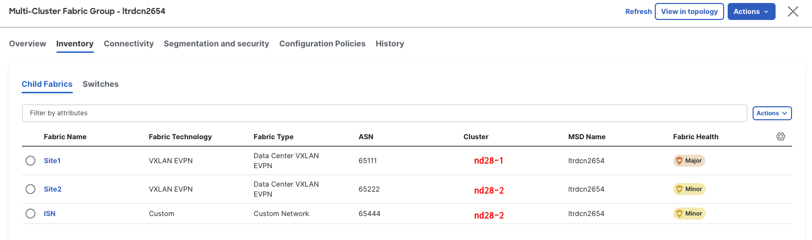 1. Click the Multi-Cluster Fabric Group name ltrdcn2654
