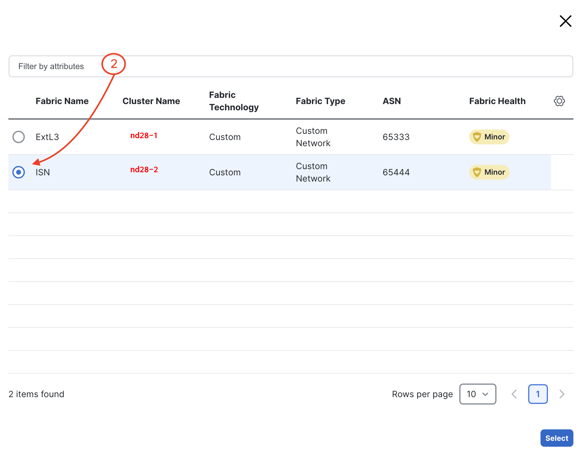 The last fabric you want to select and import is your ISN fabric. Locate ISN in the list of fabrics.