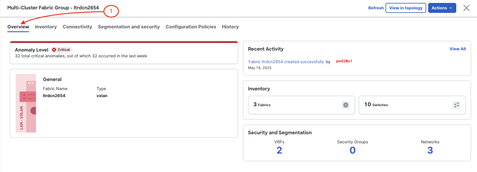 In your updated Overview dashboard, note that you have three (3) fabrics .